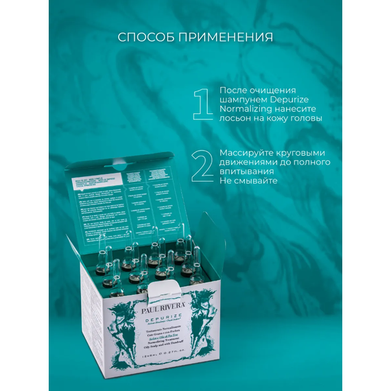 После очищения шампунем Depurize Normalizing нанесите лосьон на кожу головы. Массируйте круговыми движениями до полного впитывания. Не смывайте.