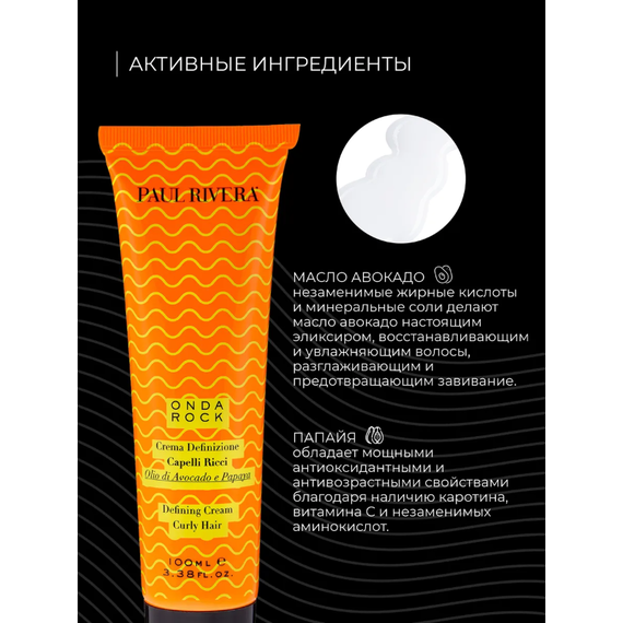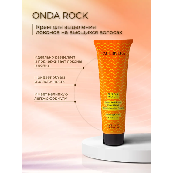 Paul Rivera Onda Rock, крем для создания идеально очерченных, выраженных локонов. Инновационная текстура крема активирует «эффект памяти», придающий локонам эластичность и мягкость в течение всего дня. Результат - идеальные, объемные и естественные локоны или волны. Формула, обогащенная маслом авокадо и экстрактом папайи, противодействует эффекту завивки, обеспечивая увлажнение, мягкость и сияние волос. Крем гарантирует максимальную фиксацию и объем даже самым непослушным прядям, не перегружая волосы и не делая их жесткими.