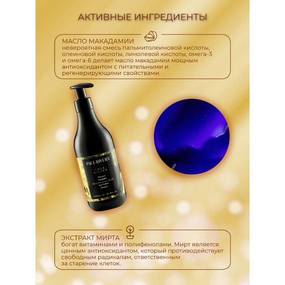 Paul Rivera True Silver - это шампунь против желтизны, который восстанавливает жизненную силу белых, седых, естественно светлых или обесцвеченных волос, противодействуя окислительному стрессу, вызывающему процесс пожелтения. Волосы окутаны драгоценной формулой, обогащенной маслом макадамии и экстрактом черники, активными ингредиентами с антиоксидантными, питательными и восстанавливающими свойствами. Шампунь против желтизны True Silver нежно очищает, усиливает прохладные тона и оставляет волосы мягкими и блестящими.