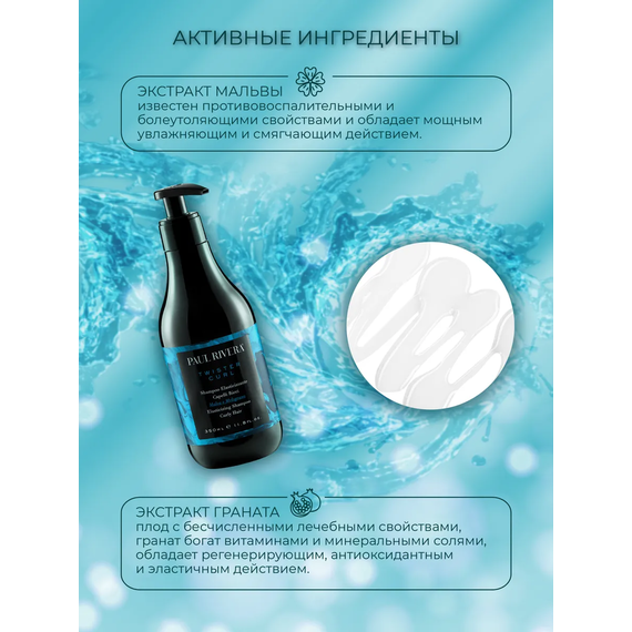 Шампунь Paul Rivera Twister Curl интенсивно увлажняет и питает вьющиеся волосы, нежно очищая их от корней до кончиков. Секрет мягких, упругих и четко очерченных локонов - это формула, обогащенная экстрактами мальвы и граната. Шампунь оказывает исключительное действие на непослушные, неуправляемые локоны. Бережно очищает и совершенствует завитки, борется с нежелательным пушением и делает волосы более естественными.