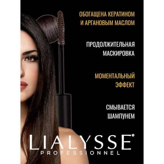 Тушь для волос Lialysse – это идеальное средство для корректировки цвета отросших корней волос, которое продлевает время между окрашиваниями. Средство обладает высокими закрашивающими свойствами, водостойкостью и практичностью в применении. При отсутствии времени или необходимости быстрого подкрашивания эта тушь незаменима.Она равномерно наносится на отросшие корни с помощью практичной щеточки и быстро сохнет. Благодаря содержанию кератина и арганового масла обеспечивается лечебное действие, не подвергающее волосы стрессу и способствует их интенсивному увлажнению, и питанию. Удаляется простым мытьем головы. Где бы вы не находились, вы можете подкрасить свои волосы с помощью туши для волос тон в тон Lialysse.
