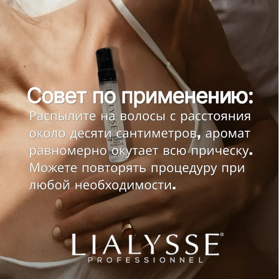 Элегантный и чувственный парфюм для волос Lialysse оставляет восхитительный аромат, который будет сопровождать вас в течение всего дня. Его легкая текстура придает волосам шелковистость и сияние, нейтрализуя или подавляя неприятные запахи. Он обволакивает волосы аурой таинственности и притягательной красоты.